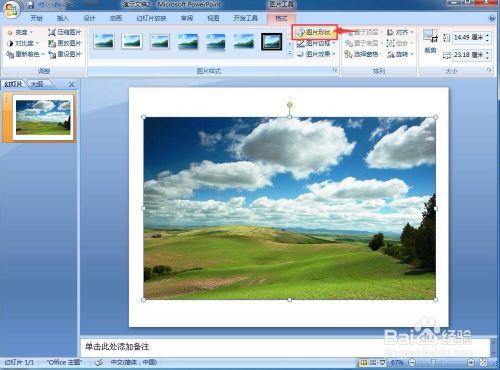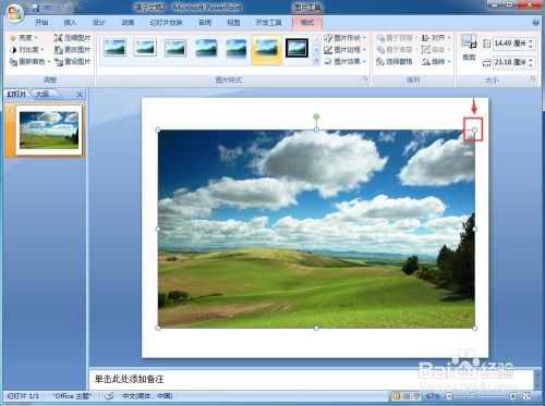 用鼠标拖动右上角的小圆形,调整好图片的大小;