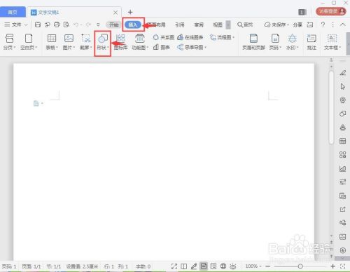 1、打开wps文字,点击插入,选择外形;