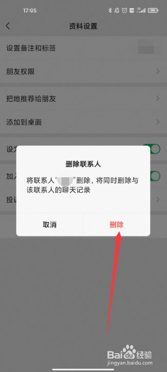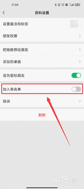 拉黑完当作后点击【删除】按钮,在弹出的窗口中再次点击【删除】即可。