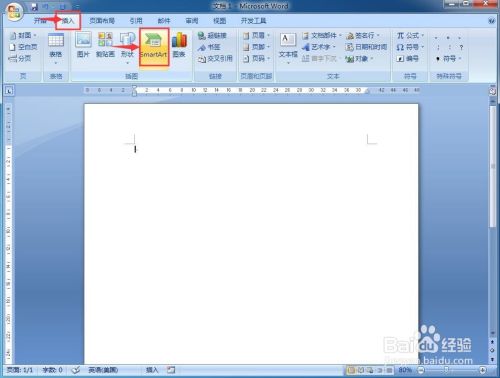 1、打开word,点击插入菜单,选择SmartArt东西;