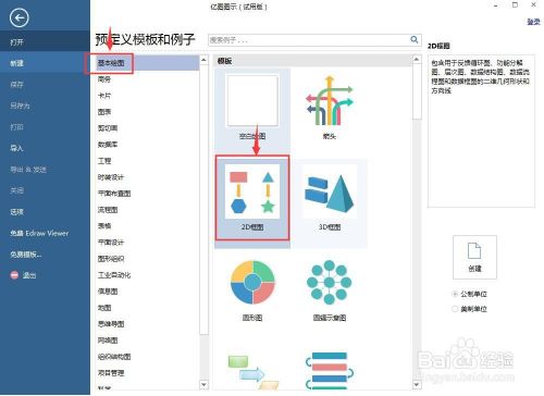 1、打开亿图图示,点击根基画图,双击二维框图;