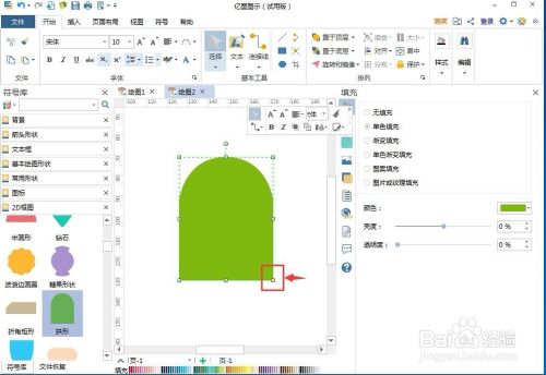 用鼠标拖动右下角的小矩形,调整好拱形的大小;