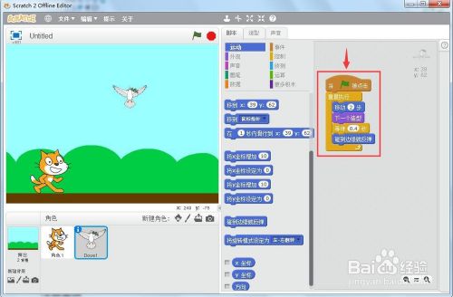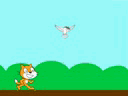 点击绿旗执行程序,鸽子翱翔动画就建造好了。