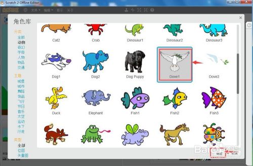 在动物类别找到并选中鸽子,按确定;