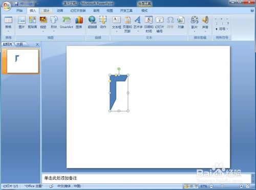 1、打开powerpoint,点击插入菜单,选择外形;