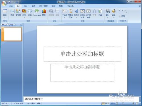 打开powerpoint 2007,进入其本家儿界面中;