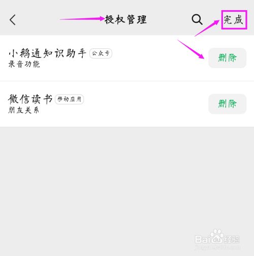 选择想要打消授权的应用,点击应用后面的“删除”按钮,再点击“完当作”即可