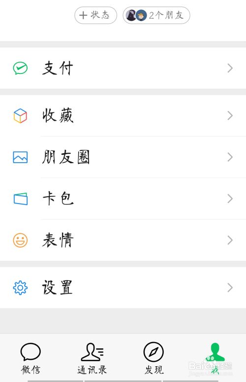 首先,在微信下方导航栏中,打开第四个“我”页面,找到“设置”选项,打开