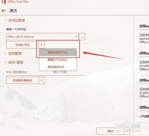 八、点击下方的【安装许可证】的下拉三角符号,点击【断根所有许可证】