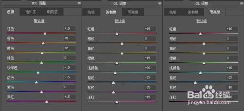 4、第四步,在HSL面板中,暖色标的目的橙色偏,冷色标的目的青色偏。