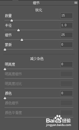 6、第六步,提高锐化参数,让图片更清楚,增添颗粒结果,让画面有噪点。