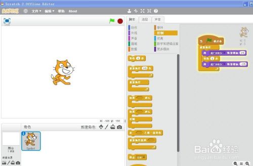 将反复执行,拉到右边,按绿旗运行,就可以看到该特效的现实结果了。