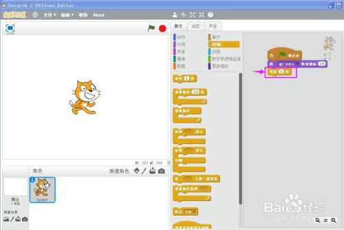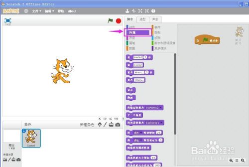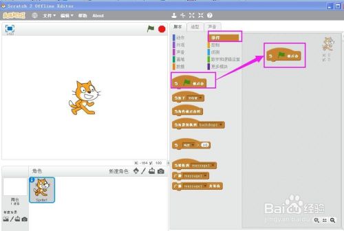 在事务中将点绿旗起头拉到右边的剧本编纂区;