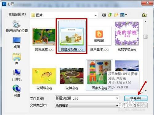 2、弹出"打开"对话框,从当地电脑中遴选一张图片,点击"打开"按钮