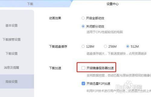 6、勾选【开启镜像办事器加快】勾选项,退出设置中间即可