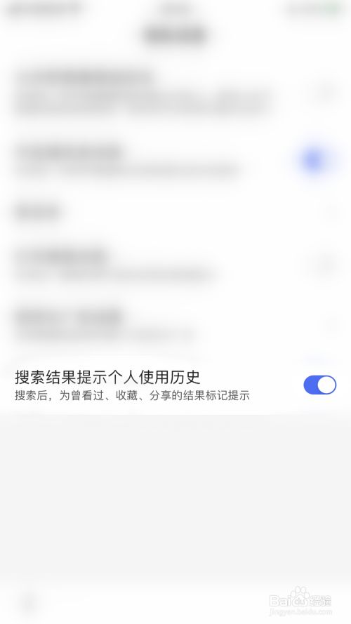 “搜刮成果提醒小我利用汗青”后面的圆点变为蓝色即暗示开启百度浏览器搜刮成果提醒小我利用汗青当作功