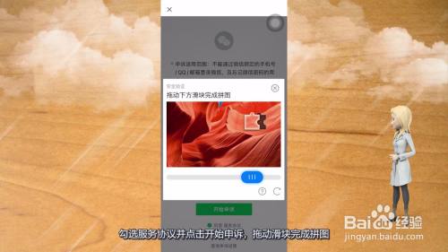 勾选办事和谈并点击起头申诉,拖动滑块完当作拼图。