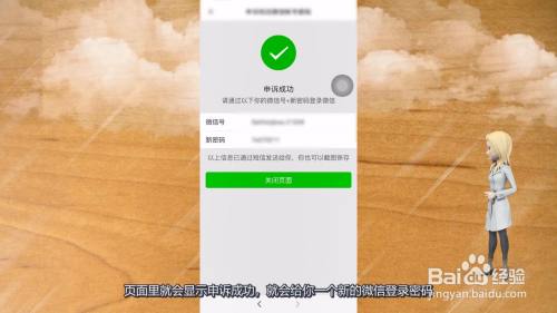 页面里就会显示申诉当作功,就会给您一个新的微信登录密码。