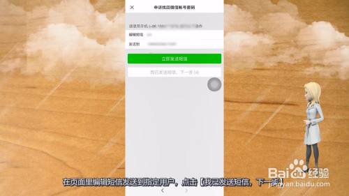 在页面里编纂短信发送到指定用户,点击【我已发送短信,下一步】。