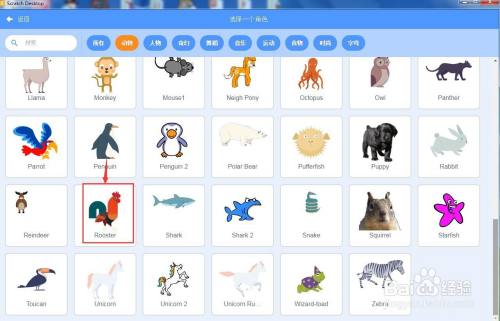 进入选择一个脚色页面中,在动物类别中点击大公鸡;