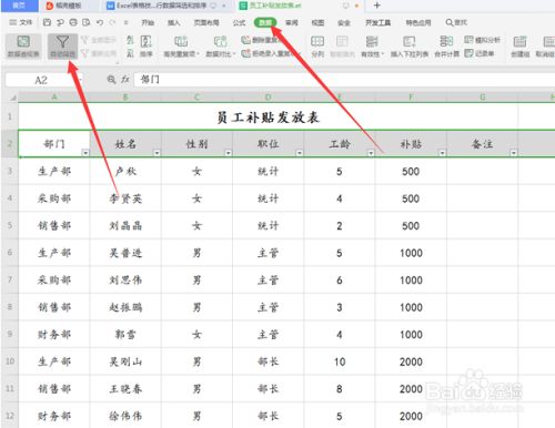 我们但愿按照职位进行筛选,看看分歧级此外员工其补助的额度是不是一样。我们选择东西栏【数据】下拉菜单中的【主动筛选】,会发现所有第二行的单位格右下角都呈现一个下三角: