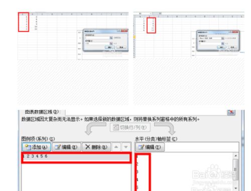 系列名称是X轴,也就是这里的A列,系列值是Y轴,也就是这里的B列。