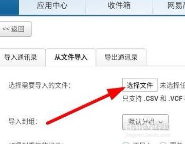 接着将保留的csv文件传到手机上,用手机浏览器打开电脑版163邮箱,点击通信录下的更多-导入通信录,操作见下图。