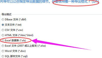 选择导出的格局为.xls,然后单击“下一步”。