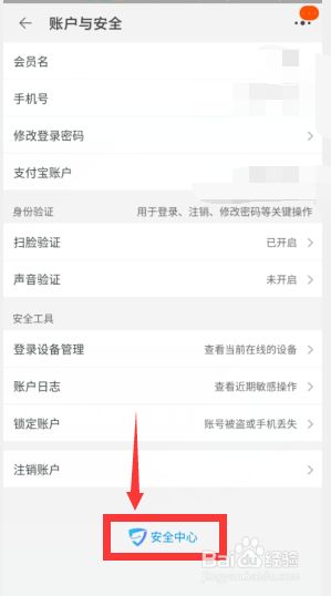 进入后,点击【账户与平安】。(如图所示)