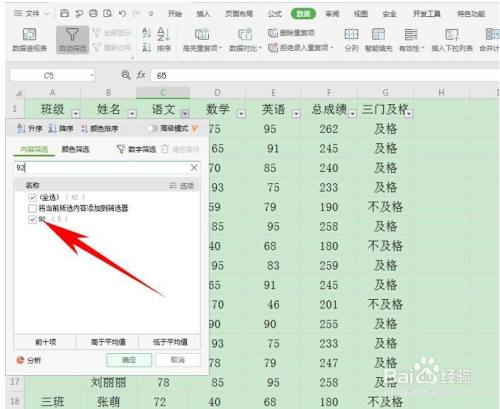 可以在内容筛选出输入某个指定成就,如输入92,单击确定即可快速查找。