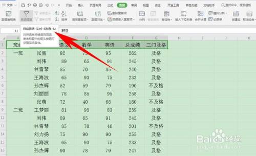 选中表格题目,单击东西栏【数据】下的【主动筛选】。