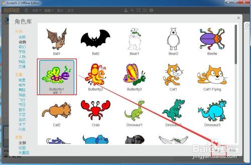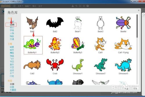 在动物类别中找到并点击蝴蝶;