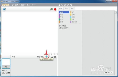 打开scratch2.0,进入其本家儿界面中;