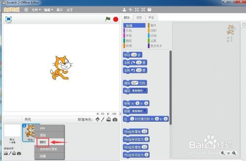 在小猫上按右键,点击删除,将脚色删除失落;