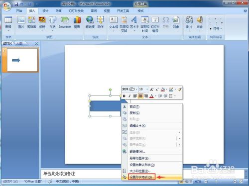 在虚从头至尾箭头上点击右键,打开快捷菜单,选择设置自选图形格局;