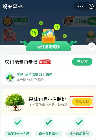 2、11月小树装扮下方三个使命,很简单,只需要一个个点击进去浏览一会即可完当作使命了
