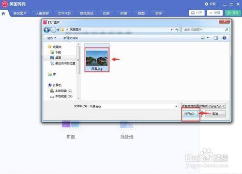 3、找到并选择需要处置的图片,然后按打开;