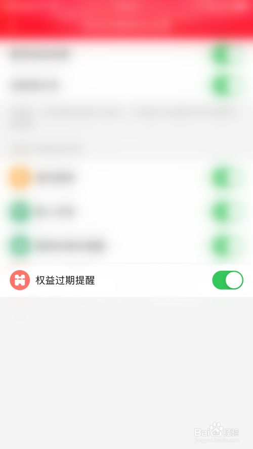 活动优惠接收设置界面点击“权益过时提醒”后面的圆点