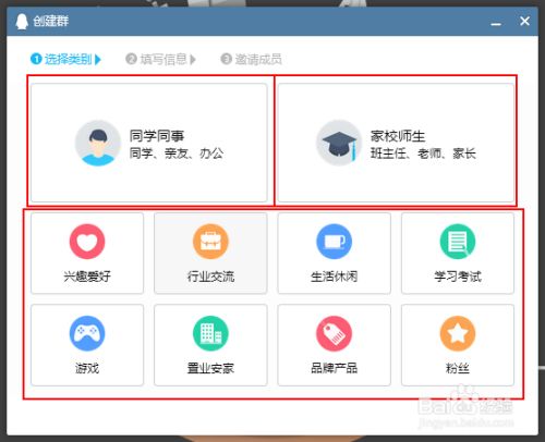 就会跳到这个界面,选择群的类型,关系或乐趣都是可以的,选完点就进入下一步了。