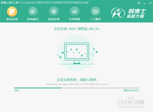 7、此时电脑进入安装系统文件的状况,全程无需大师手动操作。