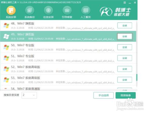 4、颠末以上操作步调当作功进入PE系统后,装机东西起头主动检测U盘中的系统文件,选中U盘的文件后点击“安装”。
