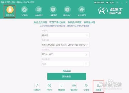 1、我们需要提前查询电脑的启动热键,经由过程启动热键就可以将电脑设置为U盘启动。具体可以点击“U盘启动”中的“快捷键”进行查询。