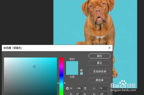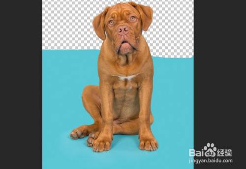 首先打开一张颜色布景单一的图片,本案例是一张蓝色布景的小狗,如图。