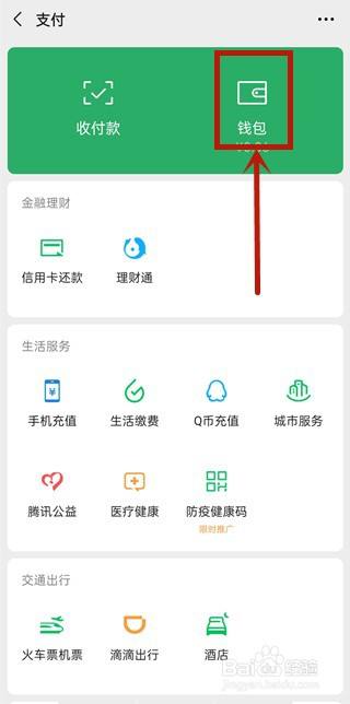 打开手机微信进入钱包中的【帮忙中间】。