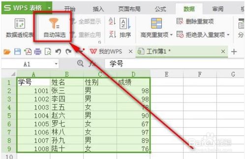 然后在数据菜单下找到“主动筛选”这个子菜单,点击它就可以给选中的数据添加筛选功能了