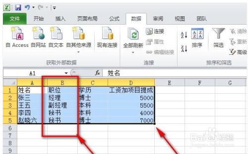 如图,可以看到这张表中有职位,学历,工资等数据,接下来小编我就介绍一下按照职位排序和工资排序的方式哦