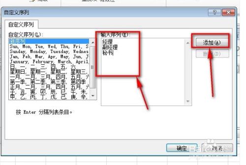 点击添加按钮之后,自界说序列就会多出一个我们之前界说好的职位挨次,也就是“司理,副司理,秘书”。然后点击确定就可以了