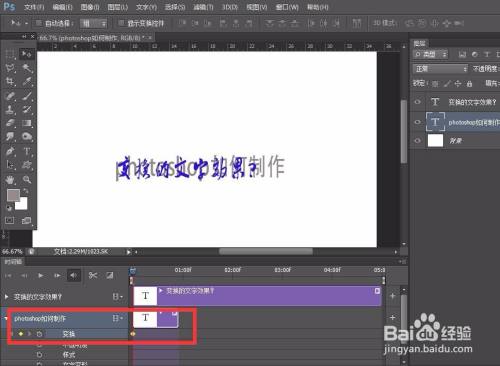 如下图所示,我们将两个文字图层时候轴的长度进行调节,使之不重合。