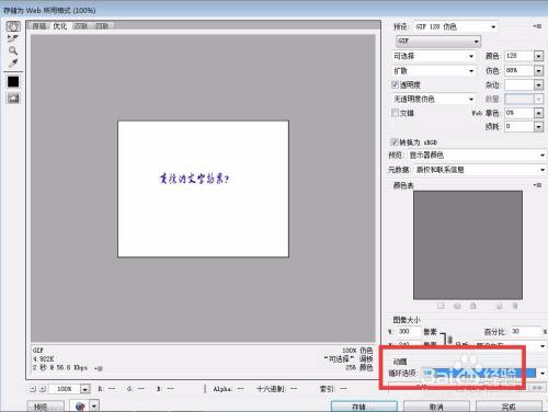 下面,我们点击菜单栏的【文件】——【存储为web格局】,将图像存储为【永远】轮回的gif格局。