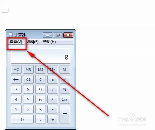 如图,这就是计较器的界面,我们点击一下左上角的“查看”按钮。